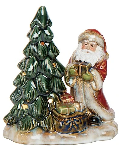 Ceramic 7.28in Multicolored Christmas Light Up Tree Santa Home