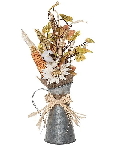 Metal 19In Multicolored Harvest Rustic Sunflower And Cotton Arrangement In Pitcher Home