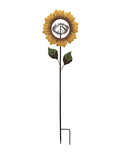 Metal 46in Yellow Spring Kinetic Flower Spinner Yard Stake Home