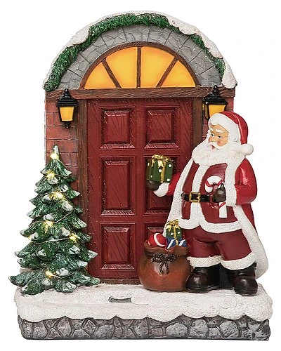 Resin 12.2in Multicolored Christmas Light Up Jolly Santa Scene Decor Home