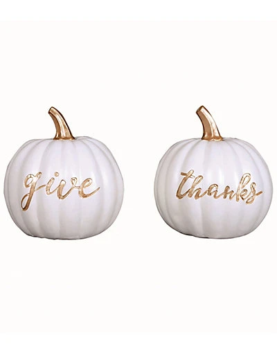 Resin 6in White Harvest Give Thanks Pumpkin Decorative Set Home