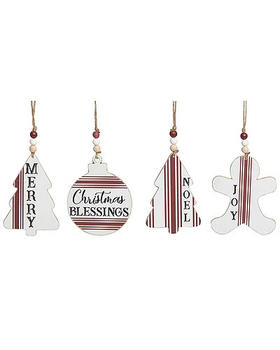 - 1x Merry Tree Ornament ; 1x Christmas Ball Blessings Ornament ; 1x Noel Tree Ornament ; 1x Joy Gingerbread Man Ornament